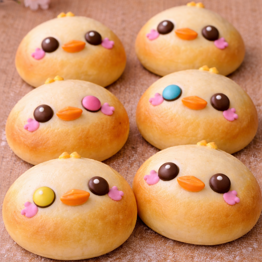 マーブルチョコやチョコペンを使ってひよこを描き、見た目も可愛い「ひよこのクリームパン」を作ります。